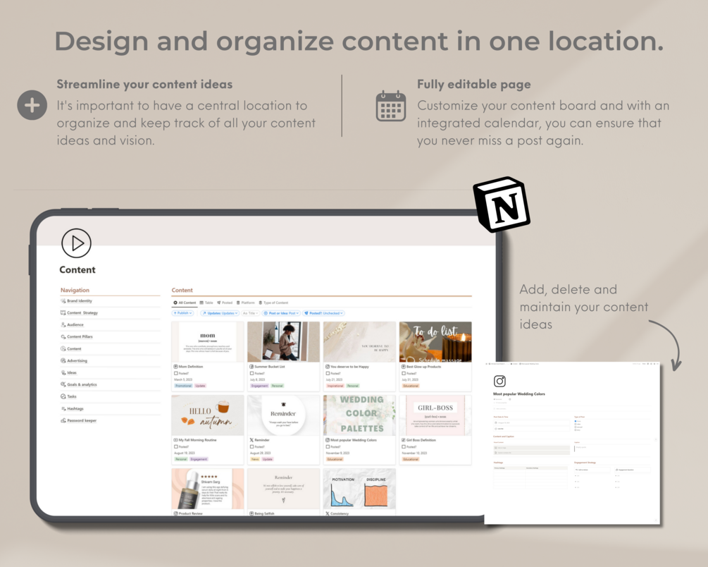 - Easy to Use: Notion's intuitive interface makes planning and scheduling your content a breeze.